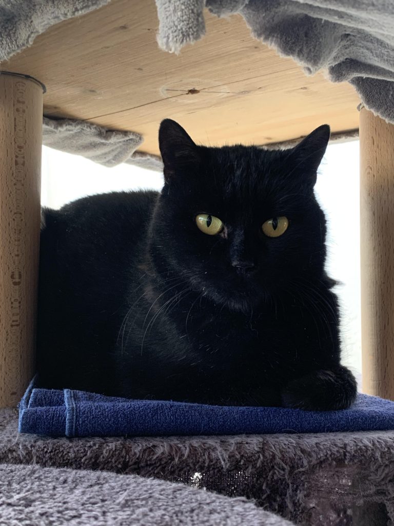 Sa personnalité : PANTHERA est arrivé très avenante avec l’humain et les autres chats puis avec les semaines qui passent elle se fait discrète et reste dans son coin….